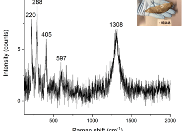 Chemical identification of hematite on a stone tool, iron (III) oxide using Raman microspectroscopy (Croft et al. 2018a).
